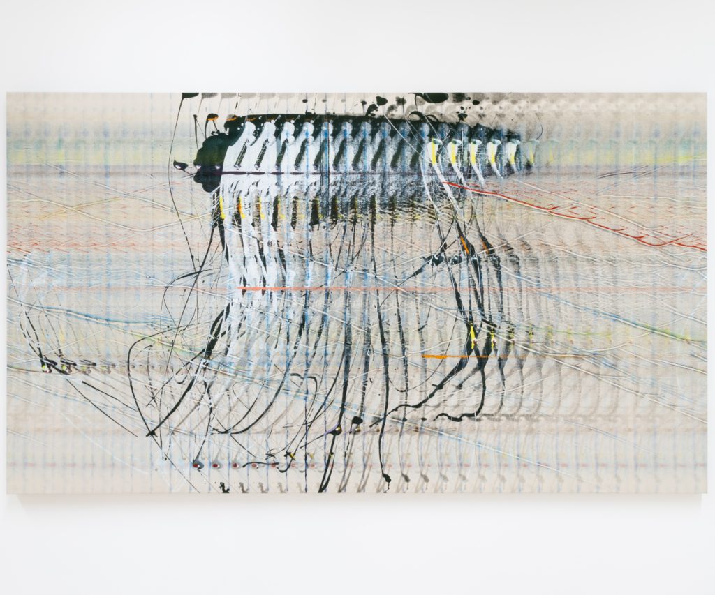 L’artista descrive il proprio lavoro come “stocastico”, riferendosi alla distribuzione apparentemente casuale dei segni nel suo processo. Di recente, Kraus ha raggiunto un punto di svolta nella sua pratica, canalizzando la sua comprensione di questi elementi imprevedibili per dare forma a movimenti più deliberati all’interno dell’opera.